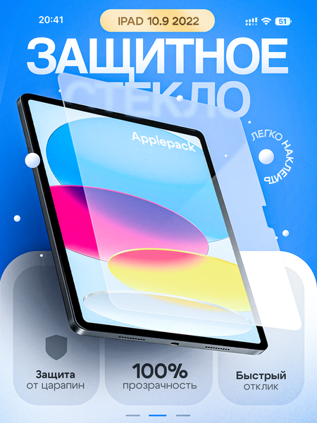 Защитное стекло надежно защитит экран вашего iPad 10.9 2022 от сколов, царапин и повреждений. Аксессуар идеально совпадает с дисплеем планшета и полностью закрывает его. Защитное стекло легко зафиксировать на экране айпад 10.9 2022 самостоятельно, нет необходимости использовать какие-либо клеящие вещества. Прочность закаленного стекла составляет 9H. Стекло практически не заметно на дисплее, пользоваться гаджетом так же комфортно, как и без стекла, оно не влияет на чувствительность сенсора и цветопередачу. Олеофобное покрытие защищает iPad 10.9 от влаги, разводов и иных загрязнений. После снятия защитного стекла на дисплее не останется следов, которые нельзя оттереть при помощи обычной салфетки. В набор входят: 1 защитное стекло для iPad 10.9 2022, 1 комплект салфеток.