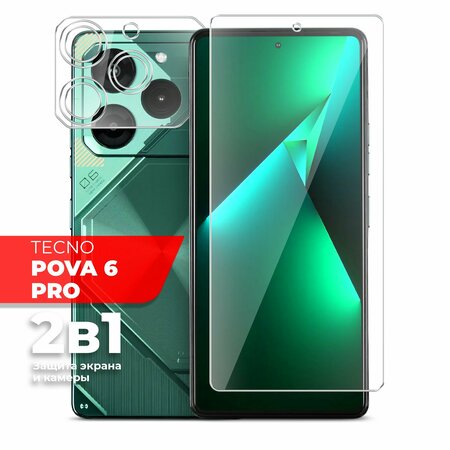 Защитное стекло для Tecno Pova 6 Pro 5G (Техно Пова 6 Про 5г) на Экран и Камеру, (гибридное: пленка+стекловолокно), прозрачное силиконовая клеевая основа тонкое Hybrid Glass, Miuko