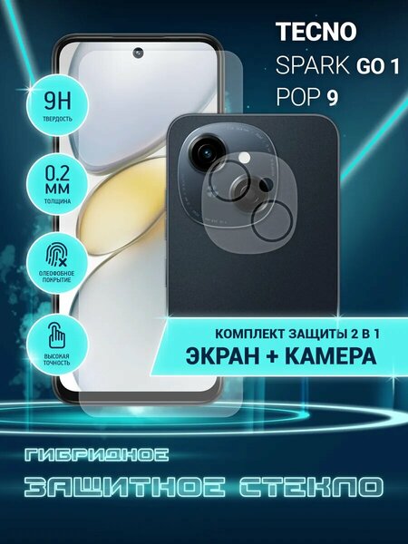 Crystal boost hybrid - комплект гибридных стекол на экран И камеру для Tecno Spark Go 1, Pop 9, Техно Спарк Го 1, Поп 9 изготовленных из композитного материала (стекловолокно + ПЭТ), совмещающих в себе гибкость пленки ПЭТ и превосходящих прочностью закаленное стекло (не возникают сколы и трещины по краям). Олеофобное покрытие препятствует появлению следов от пальцев. Защитное стекло не ощущается при использовании, обеспечивает хорошую чувствительность к касанию и не влияет на сенсорный отклик по всей поверхности дисплея. Так же совместимо со всеми ультразвуковыми датчиками отпечатка пальцев, встроенными в экран. Оно идеально прозрачное, не заметно на экране, не снижает четкость и яркость изображения и не меняет оригинальную цветопередачу. Полная проклейка поверхности Full Glue обеспечивает легкость в установке. Для сохранения продукта до момента поклейки, поставляется в прозрачной и синей транспортировочных пленках (клеевой слой находится под прозрачной пленкой). Для совместимости с чехлами предусмотрены отступы по краям.
