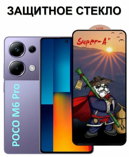 Надежная упаковка, стекло на экран на Poco M6 Pro ( Поко М6 Про ), сухая салфетка из микрофибры, влажная салфетка для обезжиривания и стикеры для удаления пыли