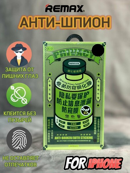 Защитное стекло антишпион для iPhone 15 Pro Max 3D Remax Medicine Glass GL-27 - отличный выбор для защиты дисплея вашего устройства. Нет больше назойливых взглядов! Благодаря использованию инновационной технологии антишпион, защитное стекло на IPhone 15 Pro Max предотвращает нежелательные взгляды со стороны. Стекло антишпион эффективно сокращает угол обзора до 45 градусов, что означает, что ваше содержимое на экране будет видно лишь вам. Защитите свою конфиденциальность и сохраните важные данные в тайне! Качественное покрытие предотвратит скопление отпечатков пальцев, разводов жидкости и прочих загрязнений, сделает значительно проще процесс очистки экрана даже от красящих веществ. Плотно прилегая к экрану, стекло на IPhone 15 Про Макс не нарушает цветопередачу и сохраняет чувствительность сенсорного дисплея. Качественная клеевая основа, нанесенная на всю поверхность стекла, позволит легко установить его на дисплей вашего смартфона. В комплекте стекло, влажная и сухая салфетки, стикеры для удаления пыли. Защитное стекло iPhone 15 Pro Max упаковано в красивую и прочную коробку, отлично подойдет для небольшого подарка коллеге или близкому человеку.
