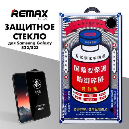 Защитное стекло для Samsung Galaxy S22 / S23 Remax GL-27, спиртовая салфетка из микрофибры, стикеры для удаления пыли, инструкция по наклеиванию, надежная упаковка