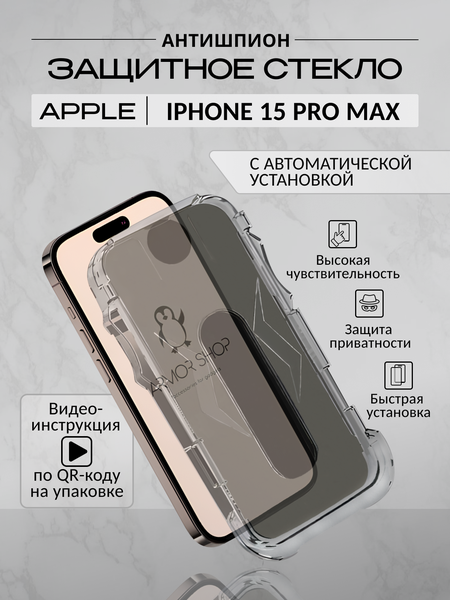 Защитное стекло для iPhone 15 Pro Max (Айфон 15 Про Макс) с автоматической установкой и эффектом антишпион от Armor Shop — премиальное решение для защиты и приватности экрана. Закалённое стекло с твердостью 9H надёжно защищает дисплей от ударов, царапин и сколов. Особенность модели — антишпионский эффект: экран остаётся чётким и ярким только под прямым углом, посторонние не смогут рассмотреть информацию. В комплекте идёт бокс-аппликатор, который облегчает установку. Технология автоматической установки исключает пузыри и смещения, гарантируя идеальное прилегание стекла. Дополнительные преимущества: Олеофобное покрытие — защита от отпечатков пальцев и пятен. Антибликовый фильтр — комфортное использование даже на солнце. Надёжная фиксация — стекло плотно держится, не отклеивается по краям. Цвет рамки: черный, поверхность — глянцевая (антишпион). Упаковано в прочную коробку, которая гарантирует целостность при доставке. Подходит как надёжное решение для повседневного использования и стильный подарок владельцу iPhone / Айфон.