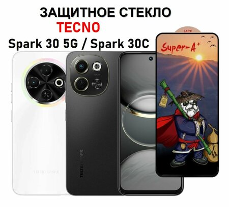 Надежная упаковка, стекло на экран на Tecno Spark 30 5G / Tecno Spark 30 ( Техно Спарк 30 5Джи / Спарк 30Ц ), сухая салфетка из микрофибры, влажная салфетка для обезжиривания и стикеры для удаления пыли