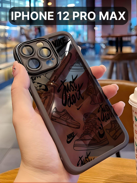 Защитный чехол на айфон 12 про макс силиконовый противоударный бампер для Apple с защитой камеры, чехол на iphone 12 Pro Max с защитными линзами, черный