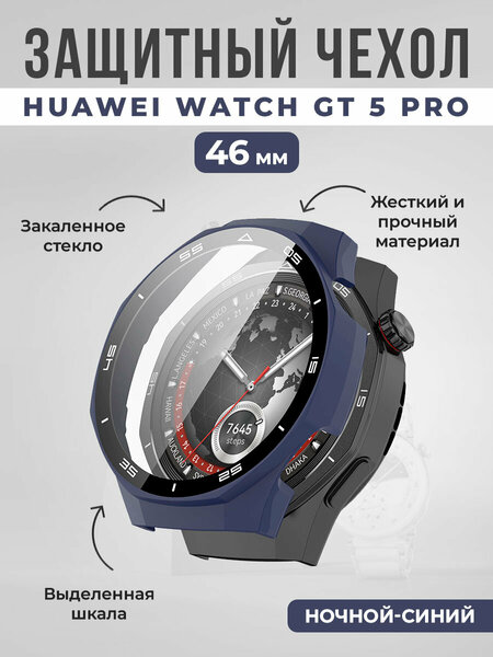 Защитный чехол со стеклом и выделенной шкалой для Huawei Watch GT 5 Pro 46 мм, ночной-синий