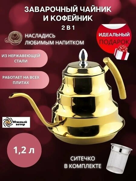 Засияй, как звезда на восточном небе, этот заварочный чайник — истинный артефакт наслаждения! Смешение изысканных традиций и современных технологий, он станет твоим верным спутником в мире ароматного чая и кофе. Его стальной корпус — крепкий щит, защищающий волшебство напитков внутри. Удлиненный капельный носик чайника заварочного дарит возможность управлять завариванием, бережно наполняя чашку из заварника волшебством вкуса. А сам процесс заваривания для чая становится настоящим ритуалом, благодаря правильной экстракции, которая извлекает все самое лучшее из чая или кофе. Эргономичная металлическая ручка заварочного чайника с ситечком, изолированная от теплого корпуса, призвана оберегать тебя от нежелательных ожогов. Стальной ободок в основании крышки чайника для заварки, как надежный дружок, предотвращает неожиданные падения заварочного чайника с подогревом. Уникальная форма носика турецкого чайника исключает подтекание жидкости, перевоплощая излишки в магию в каждой капле, без лишних разлитий на скатерть. И съемное ситечко термочайника предотвратит попадание чаинок в кружку. Стильный восточный дизайн, красивая посуда в подарок словно страница из древней сказки о волшебном эликсире, вдохновляет на удивительные приключения в мире вкусов. Как лампа Алладина, этот чайник турецкий/кофейник засияет в тихих уголках твоего дома, создавая атмосферу уюта и волшебства. Чайник с подставкой для свечи не просто предмет интерьера, а настоящий хранитель знаний о вкусах и традициях. Отдайся моменту, позволь волшебству чайнику с подогревом от свечи унести тебя в путешествие по миру вкусов и ароматов, где каждая чашка — это история, рассказанная теплом и уютом. Сделай этот заварочный чайник маленький своим верным проводником в мире волшебства, и каждый глоток станет исключительным шедевром наслаждения. Чайник нержавеющая сталь