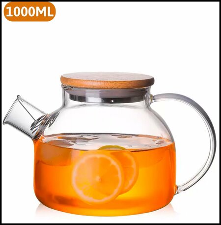 Чайник стеклянный заварочный из термостойкого материала позволяет заваривать чай на плите до 150 градусов. Бамбуковая крышка на силиконовом уплотнителе не упадёт при наливании напитков и убережет от ожогов. А фильтр-пружина удержит чайные листья и волокна фруктов, ягод и избавит от использования дополнительной сетки. Только в стеклянном чайнике напитки не впитывают посторонних вкусов и запахов. Наслаждайтесь настоящим вкусом чайной трапезы и красотой раскрывания чайных листьев, цветов и фруктов. Объем стеклянного чайника для плиты отлично подходит для посиделок дружной компании или для заваривания напитков на целый день. Стеклянный заварочный чайник легко моется проточной водой. Рекомендуется мытье заварочного чайника в посудомоечной машине без крышки.
