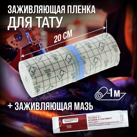 Заживляющая пленка для тату самоклеющаяся 20см х 1м и заживляющая мазь с витаминами А и D