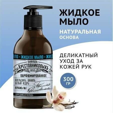 Жидкое премиальное мыло парфюмированное от бренда Заводъ Братьевъ Крестовниковыхъ Купажъ № 1 это головокружительное и сочное сочетание цитрусовых нот с древесными нюансами. Приятной сладостью раскрываются свежие нотки сока апельсина, плавно переходящие в более тонизирующий аромат цедры. Неуловимый мотив благородного белого кедра обрамляет обволакивающие и томные ноты ванили. Легкая пышная пена жидкого мыла деликатно очищает кожу, даря ей восхитительный аромат, который остается на коже длительное время и заботится о ней. Кожа остается мягкой длительное время. Погрузитесь в сенсорную арома-вселенную и ощущайте ее на протяжении всего дня! . Завод братьев Крестовников основан в 1855 году основателями нового производства являлись фабриканты Валентин и Иосиф Крестовниковы, быстро сумевшие наладить промышленный выпуск хозяйственных свечей, твердого (глыбного) и жидкого мыла. Уже через 5 лет в 1861 году Завод был удостоен чести изображать Государственный герб на своих прекрасных изделиях и поставлять замечательную продукцию на императорский двор. А в 1867, 1878 и 1889 годах потрясающее мыло Завода Братьев Крестовниковых удостоено Высших наград Всемирной Парижской выставки и получило признание не только в России, но и по всему миру (Milana). Становление завода Крестовниковых тесно связано с развитием казанской химической школы на базе Императорского университета. На научной базе последнего на предприятии создана собственная лаборатория – место рождения будущих открытий и ноу-хау под знаком высокого качества Завода Братьев Крестовниковых и Казанского химкомбината Торговая марка ЗБК объединяет ряд товарных категорий, в том числе ароматное классическое туалетное мыло, экологически-чистые и безопасные моющие и косметические средства для семей с детьми, качественная косметика и великолепная парфюмерия для мужчин.