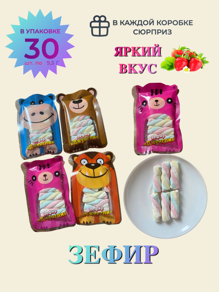 Зефир-косичка "джунгли"/ сладости для детей/ набор маршмеллоу/ блок 30 шт, 1шт. 9,5 грамм