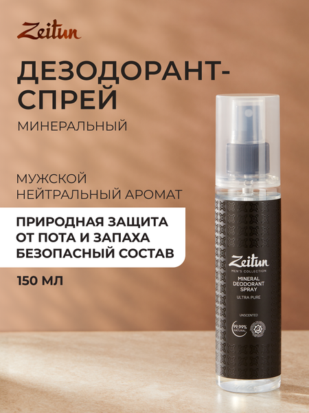 Обеспечьте себе надежную защиту от неприятного запаха и избыточного потоотделения на весь день с натуральным минеральным эко дезодорантом от Zeitun! Благодаря бережному составу без спирта дезодорант подходит даже для самой чувствительной кожи подмышек. За счет отсутствия алюминия в составе средство является невидимым на сухой коже и не оставляет пятен на одежде. Удобный формат спрея обеспечивает комфортное нанесение и экономичный расход. Отсутствие отдушки и эфирных масел в составе позволяет не перебивать аромат парфюма, при этом обеспечивая отсутствие запаха пота. В основе дезодоранта алюмокалиевые квасцы в максимальной концентрации, а также коллоидное серебро и одобренный Ecocert дезодорирующий и антибактериальный компонент Ethylhexylglycerin. Алюмокалиевые квасцы - это безопасный антибактериальный компонент, обеспечивающий мощную защиту от пота за счет прекращения размножения бактерий, являющихся источником неприятного запаха. Коллоидное серебро является эффективным природным антисептиком. Подходит для взрослых и подростков с 16 лет. Средство является универсальным и его можно применять для обуви, чтобы обеспечить свежий аромат на весь день.