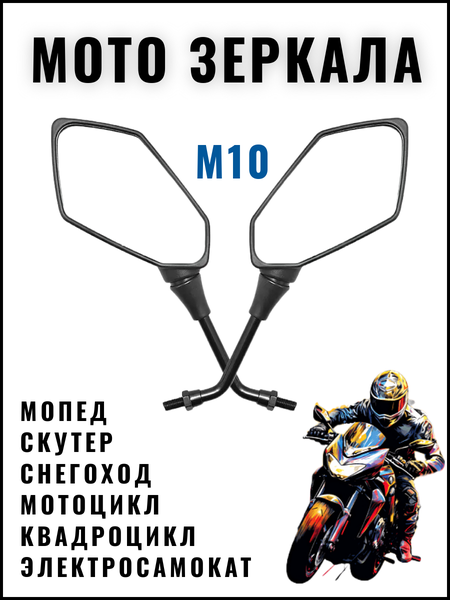 Зеркала заднего вида на резьбе 8 мм - это универсальный аксессуар для мотоцикла, скутера, мопеда, квадроцикла и других транспортных средств. Зеркало выполнено из прочного ABS пластика, имеют дренажные отверстия. Хорошие и качественные зеркала - это ваша безопасность на дороге. Наши зеркала дают хороший обзор и не искажают изображение. Такие зеркала подойдут на спортивные мотоциклы, эндуро, спортбайки, электросамокаты, снегоходы. Yamaha Ямаха, Honda Хонда, Kawasaki Кавасаки, Suzuki Сузуки, Yawa Ява, Иж, Урал, Восход, Десна, Днепр - везде, где есть необходимость установки зеркал на руль - можно применить данную модель. Не важно к какой категории любителей двухколесной техники вы относитесь: мотоциклист или скутерист, хорошие зеркала нужны в любом случае. Желаем Вам приятных покупок и ровных дорог.