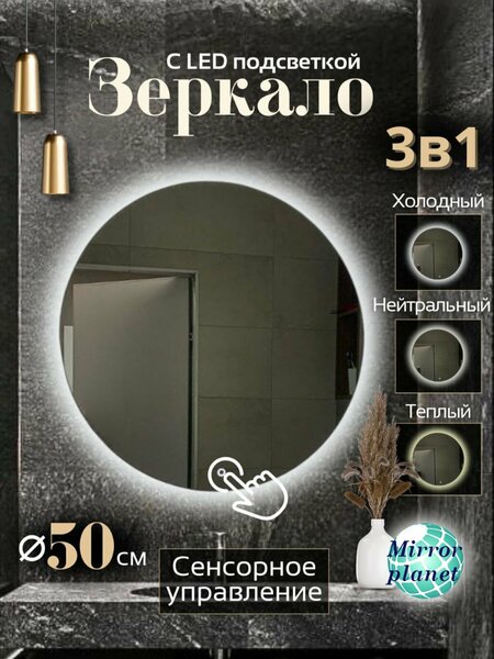 Зеркало с подсветкой интерьерное один из наиболее предпочитаемых выборов современных дизайнеров в оформлении жилых и коммерческих помещений. В домах и квартирах дизайнеры используют зеркала с подсветкой в ванну, в спальню, в гостиную, в прихожею, а также в коридор. Зеркало в ванную с подсветкой выбирают не случайно безрамный корпус и LED подсветка придает зеркалу, парящий эффект что смотрится очень стильно и гармонично в любом интерьере. Зеркало для ванной с подсветкой может стать главным акцентом в оформлении, а качественное покрытие амальгамы позволит насладиться своим отражением. Круглое зеркало с подсветкой в спальню зачастую используют как зеркало для макияжа или гримерное зеркало с подсветкой. Зеркало в коридор настенное или прихожую с подсветкой будет встречать ваших гостей мягким светом, радующим глаза. Зачастую наши зеркала с подсветкой приобретают как подарок на 8 марта, подарок на день рождение и подарок на новый год, на свадьбу, новоселье, годовщину, а также для любого значимого события как подарок для мамы, подарок для любимой, подарок жене и подарок на юбилей. Зеркало большое оснащено диммируемым сенсорным выключателем, который используется для управления освещением. При однократном касании сенсорного датчика светильник включается, при повторном однократном касании светильник выключается, при удерживании сенсора регулируется яркость освещения. Зеркало настенное не с увеличением без рамы имеет в комплекте крепления. Прямое подключение 220 В. Расстояние от стены 2 см, т. е. 16 мм. каркас из лмдф + 4 мм. зеркало. В ассортименте нашего бренда так же вы можете найти: зеркало квадратное, зеркало овальное, зеркало декоративное настенное, аксессуары для дома. Зеркало с подсветкой "Mirror room" дарим уют вашему дому! В комплекте с зеркалом идут: крепления 2 шт, шнур с вилкой длиной 1,8 м, салфетка из микрофибры, инструкция. Надежная упаковка позволяет доставить зеркало в целости и сохранности.