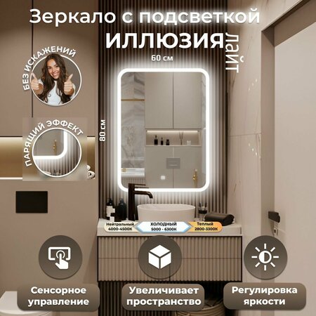 Нравится смотреть на себя в зеркало, но были недовольны тем, как падает свет? Часто задумываетесь о дополнительном освещении в ванной? Давно ищете необычное и стильное зеркало? Тогда настенное зеркало Иллюзия идеально подойдёт Вам! Наше зеркало настенное имеет самые популярные и востребованные размеры, а продукция изготовлена из влагостойкого зеркала толщиной 4 мм, что позволяет стать прекрасным зеркало в ванную! При изготовлении зеркала с LED-подсветкой мы используем светодиодную ленту с плотностью диодов 120 шт/м и мощностью 9,6 Вт/м. Благодаря этому Вы получаете достаточно яркую и приятную подсветку, которая обеспечит легкое и атмосферное освещение комнаты, высокоэффективные светодиоды создают отличное освещение даже в самых затемненных местах. Потребляемая мощность включенной подсветки - всего 20Вт/ч. А благодаря полупрозрачному канту по периметру, Вы получаете идеальное отражение без лишнего блеска или же засветов лица, что дает максимально приятную картинку. Данный продукт может стать зеркалом для макияжа, зеркало в прихожую настенное, зеркалом с подсветкой настенное. Наше зеркало с подсветкой обладает сенсорным управлением, с возможностью плавного регулирования подсветки у Вас есть возможность подобрать наиболее комфортную и предпочитаемую яркость подсветки. Благодаря вариативности данных зеркал, у наших покупателей есть возможность подобрать для себя вариант, наиболее подходящий под их собственный стиль. При компактных размерах настенного зеркала - оно обладает стильным дизайном, поэтому с нашими зеркалами интерьер будет выглядеть дороже даже в маленьком помещении. Доступная роскошь у вас дома! Покупая наши зеркала, Вы покупаете напрямую у производителя. Кладем в подарок вилку с проводом - Вам достаточно просто отсоединить её