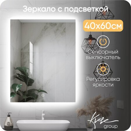 Зеркало настенное в ванную с подсветкой KVVgroup Alone Quadrato 40*60 см (прямоугольное зеркало для ванной с подсветкой, сенсорное управление, холодая подсветка 6000К)