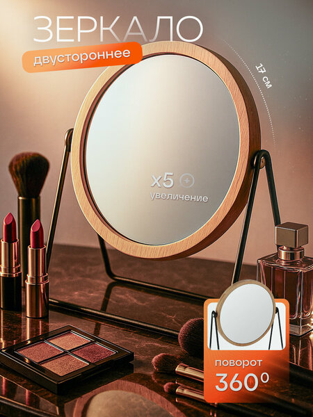 Зеркало настольное косметическое с увеличением МТ-200 от AMI - это незаменимый аксессуар для ухода за собой. Зеркало выполнено в стиле лофт с оригинальной ножкой, покрытой матовым черным порошковым покрытием. Круглая рама изготовлена из бамбука, что придает изделию изысканный вид. Изделие на подставке имеет две стороны: одна сторона стандартная, а вторая с пятикратным увеличением. Это позволяет наносить косметику и корректировать брови с максимальной точностью. Двустороннее зеркало оснащено устойчивой подставкой, что делает его удобным для использования в ванной комнате или прихожей. Также его можно разместить на комоде или гримерном столе в спальне. Зеркало имеет поворотную функцию, что позволяет регулировать угол наклона для максимального удобства использования. Зеркало настольное косметическое с увеличением МТ-200 от AMI - это не только стильный аксессуар, но и практичный инструмент для ухода за собой. Вращающееся маленькое зеркальце в раме - отличный подарок родным и близким по любому поводу, будь то новый год или новоселье.