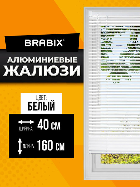 Жалюзи горизонтальные алюминиевые на пластиковые и деревянные окна, 40x160 см, Brabix, белые, 606030