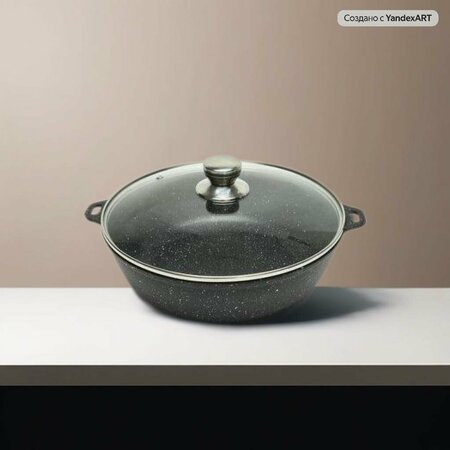 Жаровня с антипригарным гранитным покрытием и стеклянной крышкой, прочная и удобная