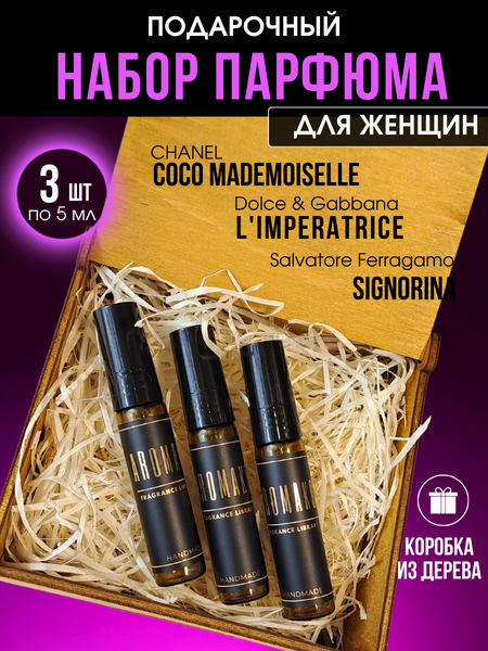 Женский подарочный набор парфюма AROMAKO представляет собой три флакона по 5 мл каждый, что позволяет наслаждаться любимыми ароматами в течение длительного времени. В набор входят три разных аромата по мотивам известных брендов, каждый из которых обладает своим уникальным характером и стилем. Деревянная коробка, в которую упакованы духи, придает набору особый шарм и элегантность. Такой подарок будет выглядеть стильно и дорого.