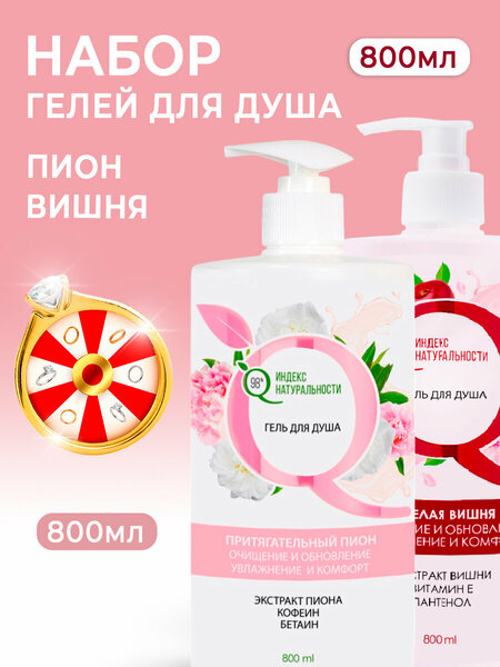 Набор гелей для душа Индекс Натуральности "Пион-Вишня", 800мл, 2шт