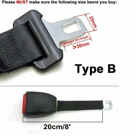 Пожалуйста, измерьте ширину кулачка перед покупкой. Убедитесь, что размеры металлического язычка ремня безопасности (там, где вам нужен удлинитель) соответствуют всем нашим измерениям.