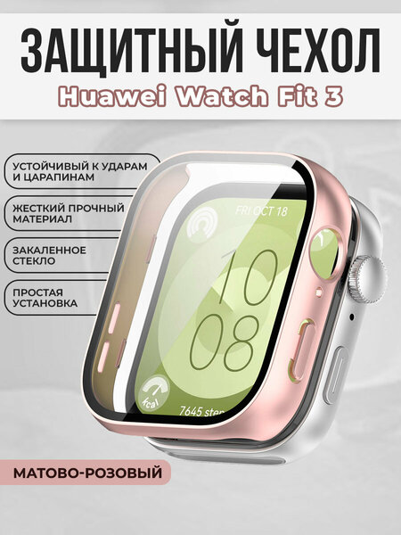 Жесткий чехол с защитой экрана для Huawei Watch Fit 3, закаленное стекло, матово-розовый