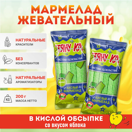 {"widgets":{"@card/UniversalPromoBadge":{"/content/page/fancyPage/universalPromoBadge":{"wrapperProps":{"margins":{"bottom":"3"}},"initialTime":1760207215543,"offerComposeId":"599269115"}}},"meta":{"/content/page/fancyPage/universalPromoBadge":{"name":"@card/UniversalPromoBadge"}},"collections":{"productServiceSnippets":{"599269115":{"productSnippet":{"type":"MODEL_CARD_LAYOUT","productPayload":{"snippetStyle":"NORMAL","title":{"value":"Жевательный мармелад кислый в форме ленты со вкусом Яблока Тяну-ка 200г"},"badges":{},"gallery":{"mediaItems":[{"picture":{"baseUrl":"https://avatars.mds.yandex.net/get-mpic/5313421/2a000001940c0f1cb89e8144313612d51aef/","width":1200,"height":1200,"title":"Жевательный мармелад кислый в форме ленты со вкусом Яблока Тяну-ка 200г"},"type":"IMAGE"},{"picture":{"baseUrl":"https://avatars.mds.yandex.net/get-mpic/1853752/2a000001940c0f1cb3bbed9a7bc5601ce8bf/","width":1200,"height":1200,"title":"Жевательный мармелад кислый в форме ленты со вкусом Яблока Тяну-ка 200г"},"type":"IMAGE"},{"picture":{"baseUrl":"https://avatars.mds.yandex.net/get-mpic/1866031/2a000001940c0f1cb856750bb76ac6f88fae/","width":1200,"height":1200,"title":"Жевательный мармелад кислый в форме ленты со вкусом Яблока Тяну-ка 200г"},"type":"IMAGE"},{"picture":{"baseUrl":"https://avatars.mds.yandex.net/get-mpic/11476411/2a000001940c0f1cb9b6c150e4d69d1ced79/","width":1200,"height":1200,"title":"Жевательный мармелад кислый в форме ленты со вкусом Яблока Тяну-ка 200г"},"type":"IMAGE"},{"video":{"url":"https://frontend.vh.yandex.ru/player/vOLqO2xT9y10","width":1920,"height":1080,"title":"Жевательный мармелад кислый в форме ленты со вкусом Яблока Тяну-ка 200г","preview":{"baseUrl":"https://avatars.mds.yandex.net/get-mpic/5207439/2a00000192a29578f6988626a717878049a6/","width":1920,"height":1080,"title":"Жевательный мармелад кислый в форме ленты со вкусом Яблока Тяну-ка 200г"},"streams":[{"type":"dash","url":"https://strm.yandex.ru/vod/vh-market-upload-converted/vod-content/5776973141903257382/7ddab369-d5d5-4a46-8d53-564b10a66d26/kaltura/desc_4a4520b517ca6e4a6be00162568ac587/6758773931824298552/ysign1=b65d75215ef552a8be92984626abc4f378580c376aaac800ea910b5333b839a4,abcID=1632,from=unknown,pfx,sfx,ts=68f7d06f/manifest.mpd"},{"type":"hls","url":"https://strm.yandex.ru/vod/vh-market-upload-converted/vod-content/5776973141903257382/7ddab369-d5d5-4a46-8d53-564b10a66d26/kaltura/desc_4a4520b517ca6e4a6be00162568ac587/6758773931824298552/ysign1=c320443b0709bfdfc467c6c84284e45e15646eeb03cdab88190a7f0115a7e953,abcID=1632,from=unknown,pfx,sfx,ts=68f7d06f/master.m3u8"}]},"type":"VIDEO"}],"galleryType":"COMMON"},"rating":{"ratingValue":4.4,"ratingCount":186,"reviewsCount":82,"ratingCountStats":{"cnt1":16,"cnt2":3,"cnt3":15,"cnt4":13,"cnt5":139}},"wishlistButton":{"businessId":71195440,"mskuId":103502549585,"modelId":599269115,"oskuId":103502549585}},"baobabPayload":{"type":"offer","wareId":"out-of-stock","modelId":599269115,"marketSku":"103502549585","snippet_type":"product","isExpress":false,"vendorId":52526193,"hid":14706137,"isUltima":false,"oskuId":103502549585}}}}}}