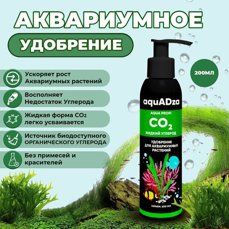 Жидкий CO₂ 200 мл — удобрение и источник углерода для аквариумных растений. Ускоряет рост, усиливает окраску листьев и укрепляет побеги без необходимости установки баллона CO₂. Подходит для всех видов пресноводных аквариумов. Преимущества: обеспечивает растения доступным углеродом — ключевым элементом фотосинтеза; стимулирует образование новых побегов; улучшает здоровье и внешний вид аквариумной флоры; прост в применении — всего несколько миллилитров в день; совместим с другими удобрениями. Применение: встряхнуть флакон, вносить ежедневно или по инструкции (2–5 мл на 100 л воды). Характеристики: объём — 200 мл, Состав: 1,3-diformylpropane, форма — жидкость, тип — удобрение для аквариумных растений, назначение — пресноводные аквариумы. жидкий CO₂, жидкий углерод, удобрение для аквариумных растений, стимулятор роста, CO₂ без баллона, средство от водорослей, жидкое удобрение для аквариума.