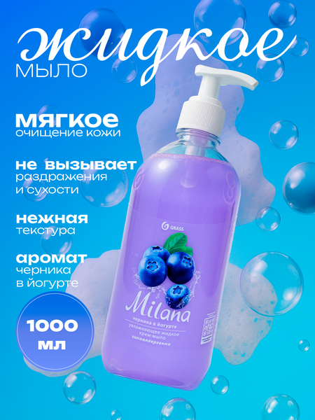 Жидкое крем-мыло "Милана", йогурт и черника, для всех типов кожи, 1 л