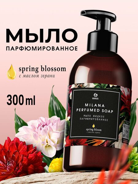 Жидкое мыло парфюмированное Milana Spring Bloom 300 мл от Grass. Крем мыло подарит коже рук стойкий свежий аромат. Жидкое мыло обладает достоинствами и мыла, и духов, легкий цветочный аромат надолго останется с вами. Густая, нежная пена, с мягкими натуральными пенообразователями на основе кокосового масла, мягко очищает и увлажняет кожу. Масло макадамии и масло кедра, входящее в состав мыла, питает, восстанавливает, убирает шелушение. Мыло от Грасс с дозатором смягчает кожу и дарит ей молодость, можно использовать как гель для душа. В линейке уходовой косметики Милана Грасс в ближайшее время появятся шампунь для жирных волос, бессульфатный шампунь оттеночный для волос, твёрдый и сухой шампунь, шампунь глубокой очистки, оттеночный бальзам и маска для волос, крем для рук, скраб для тела, гель для душа, спрей и кондиционер для волос, набор шампунь и бальзам для волос, набор подарочный гель и жидкое мыло, которые станут отличным подарком подруге, маме, девушке на 8 Марта, подарок на Новый год и на День Рождения, подарок на День святого Валентина.