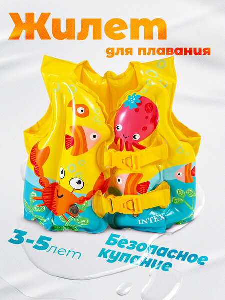 Если ваш ребенок боится плавать с нарукавниками или в круге, попробуйте предложить ему жилет. В нем, он почувствует большую поддержку, уверенность и перестанет бояться. Жилет очень яркий и жизнерадостный, ведь на нем живут очень милые морские жители. С таким жилетом процесс обучения станет не только простым, но и веселым. Данная модель оснащена двумя регулируемыми застежками, которые будут надежно фиксировать вашего ребенка. Жилет идеально подойдет для детей от 3 до 5 лет.
