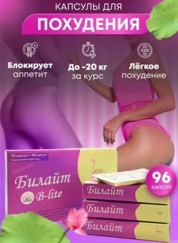 Средство для похудения Билайт 90 картон, королевский ― биологически активный препарат из натуральных продуктов. Средство для похудения Билайт ― биологически активный препарат из натуральных продуктов. Билайт содержит уникальные компоненты, которые способны воздействовать на организм, вызывая в нем положительные изменения. Препарат уникален, и при регулярном приеме от ненужных кило не останется и следа ― применение препарата способствует равномерному устранению жировых отложений в области талии, живота и бедер. Кроме того, применение капсул Билайт нормализует состояние подкожной жировой клетчатки, регулирует уровень содержания липидов в крови, в т. ч. ожирение из-за избыточного питания, после родов, в среднем возрасте, из-за нарушения обмена веществ, при коронарной болезни сердца, гипертонии, сахарном диабете. Капсулы для похудения Билайт показаны тем людям, у кого проблемы с лишним весом возникли как раз из-за имеющихся сбоев в обмене веществ. Билайт способствует здоровому уменьшению объемов и снижению веса, вследствие нормализации обменных процессов и физиологической очистке организма на клеточном уровне. Состав: лист лотоса, трутовый гриб, пориа кокосовидная, внутренняя оболочка куриного желудка, корневище дискореи супротивной, плод боярышника. Показания: здоровое уменьшение объемов и веса, нормализация обмена веществ. Противопоказания: беременность, кормление грудью, дети до 16 лет, индивидуальная непереносимость компонентов Способ применения и дозировка капсул Билайт: два раза в день по 3 капсулы, за 30 минут до еды, при быстром снижении веса, дозу нужно уменьшить вдвое. Противопоказания: беременность, кормление грудью, дети до 16 лет, индивидуальная непереносимость компонентов.