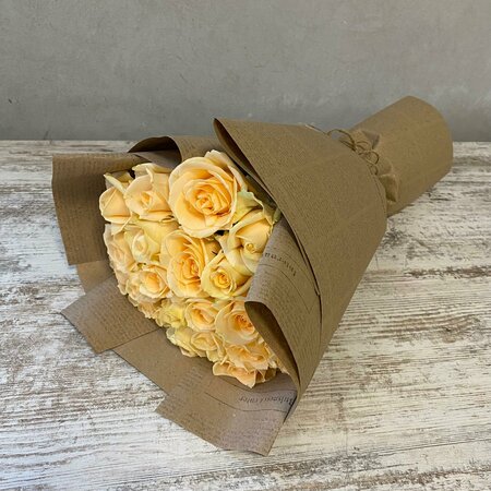 Букет цветов выполнен с заботой о каждой детали, что делает его идеальным подарком для любого праздника, будь то день рождения, юбилей, или просто желание порадовать близкого человека. Нежный кремовый оттенок роз создаст ощущение лёгкости и воздушности в вашем интерьере, а аромат свежих цветов наполнит пространство гармонией.