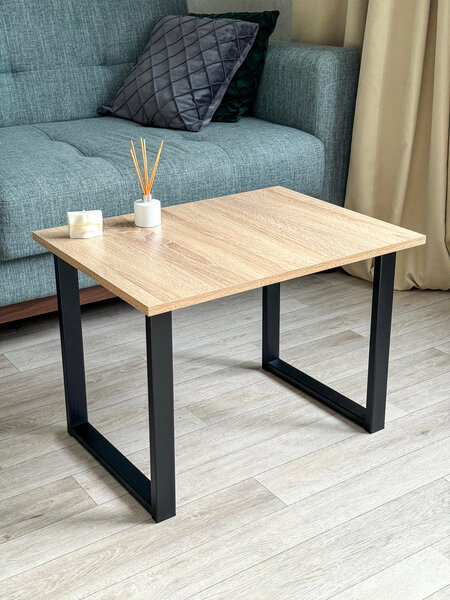 Маленький журнальный стол для влюбленных в сдержанную эстетику лофта, минимализма и эргономичности. Идеальное дополнение для Вашего современного интерьера. Журнальный столик "Neo Loft" займет достойное место в Вашей гостиной, спальне и на кухне. Благодаря компактным размерам, стол удобно разместится в небольшой комнате и на веранде. Столешница изготовлена из ламинированной ДСП эко-категории 16 мм. Прямоугольная столешница. При эксплуатации стола необходимо пользоваться подставками под горячее, и в случае попадания воды, необходимо сразу протереть насухо. Металлические ножки изготовлены из стальной трубы и надежно крепятся к подстолью при помощи саморезов и опираются на пластиковые заглушки, чтобы не повредить Ваше напольное покрытие. Порошковое покрытие опор предотвращает образование коррозии и устойчиво к появлению царапин. Используемые материалы: ЛДСП класса Е1, кромка - ПВХ 1 мм, металлическая труба 40х20 мм. Габаритные размеры: ширина 45 см, длина 60 см, высота 43 см (со столешницей). Покрытие металла: порошковая краска "черный муар" с последующей термообработкой в печи при температуре 200 градусов. Максимальная нагрузку на стол не более 50 кг. Вес стола 3 кг. Стол поставляется в разобранном виде, упакован в трехслойную картонную коробку. Обращаем Ваше внимание, отверстия и разметка в столешнице не предусмотрены! Вы можете прикрутить их с краю столешницы или отступить от края на необходимое расстояние.