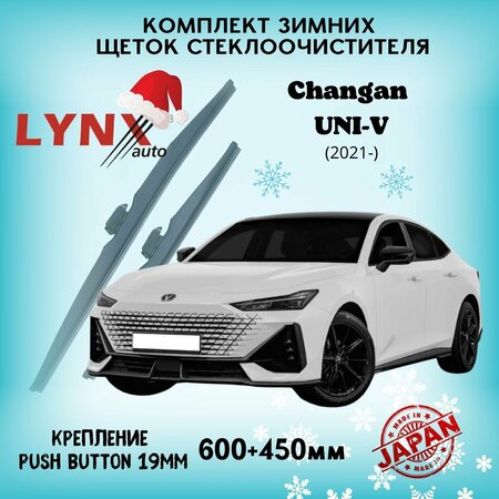 Зимние щетки стеклоочистителя LYNXauto для Changan UNI-V / Чанган Юни-В 2020, 2021, 2022, 2023, 2024 год (длина 600 450 мм. крепление Push Button 19mm). Японские зимние дворники LYNX – ключевой элемент безопасности для вашего автомобиля в холодный сезон. Специально разработанные щётки стеклоочистителя обеспечивают чистоту лобового стекла, защищая от снега и дождя. Автомобильные аксессуары оснащены металлическим каркасом, который надежно защищен эластичным чехлом. Эта особенность предотвращает обмерзание шарниров, что делает их незаменимой запчастью для авто в любую непогоду и мороз. Идеальное прилегание к поверхности гарантирует безупречную работу без шума и разводов. Такие характеристики возможны благодаря натуральному каучуку, из которого изготовлена чистящая лента. Она дополнительно обработана графитом для достижения максимальной эффективности очистки. Это делает такие автотовары отличным подарком любому владельцу. Инновационные технологии Линкс подчеркивают качество и долговечность изделия. Автодворники держатся в поводке благодаря универсальным адаптерам, которые полностью соответствуют марке Вашей машины. Каждый комплект из двух штук может стать оригинальным решением для ухода за вашим транспортным средством. Зимние шетки в отличие от бескаркасных или гибридных моделей имеют чехол из прочной резины. Каждая деталь тщательно продумана до мелочей: от материала до конструкции очистителя – всё служит одной цели: обеспечить хорошую видимость водителю и пассажирам при неблагоприятных погодных условиях. Купили такую защиту для стекла – сделали шаг к безопасной и комфортной езде зимой! Мы с удовольствием ответим на любые вопросы по подбору через раздел «Вопросы».