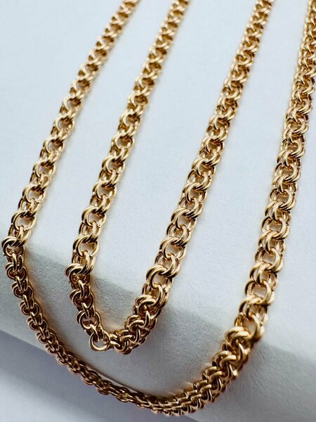 Золотая цепь "Бисмарк" 585 пробы: изысканный аксессуар для любого образа Золотая цепь "Бисмарк" 585 пробы представляет собой изысканный аксессуар, который станет ярким акцентом вашего образа. Изготовленная на Костромском Цепевязальном Заводе, эта цепь сочетает в себе высокое качество и стильный дизайн. Плетение "Бисмарк" придает цепи неповторимый шарм и элегантность. Это классическое плетение, которое никогда не выходит из моды и всегда выглядит актуально. Красное золото 585 пробы гарантирует высокое качество изделия. Этот сплав обладает красивым блеском и долговечностью, что делает его популярным среди любителей ювелирных изделий. Длина цепи составляет 60 см, а вес – 3,30 гр. Это делает аксессуар удобным и комфортным для ежедневного использования. Выбирая золотую цепь "Бисмарк" 585 пробы, вы получаете стильный аксессуар, который будет радовать вас своим внешним видом и качеством на протяжении многих лет.