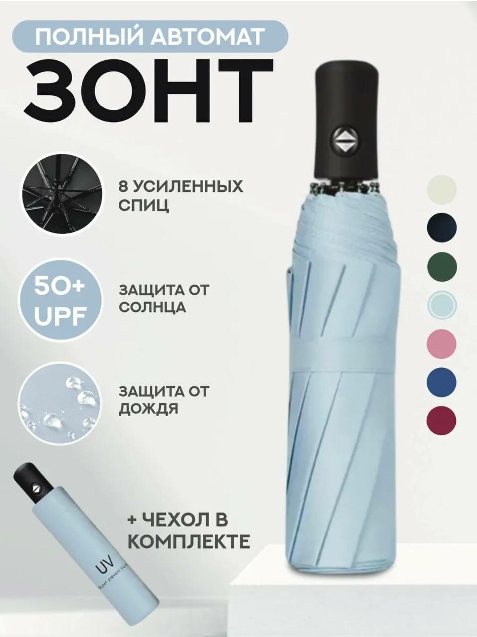 Характеристика изделия: • Тип: складной, трёхсложный. • Цвет: тёмно-зелёный. • Материал купола: плотная ткань с UV-защитой (предохраняет не только от дождя, но и от солнечных лучей). • Механизм: автоматический (открытие/закрытие кнопкой). • Ручка: удобная, с петлёй для фиксации на руке. • Назначение: подходит и для дождя, и для солнца. Особенности и преимущества: • 2 в 1 — защита от дождя и солнца. • Компактный размер — удобно носить в сумке или рюкзаке. • Устойчив к выгоранию и промоканию. • Подходит для ежедневного использования. • Универсальный дизайн — стильный и лаконичный.