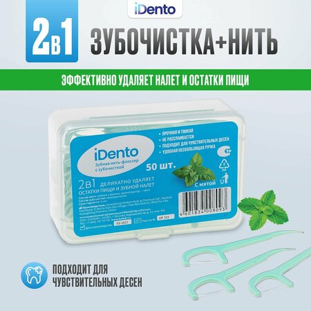 Зубная нить-флоссер с зубочисткой iDento — отличное решение для ежедневного ухода за полостью рта. Она позволяет избежать кариеса, неприятного запаха и образования зубного камня, сохраняя ваши зубы здоровыми. Зубная нить-флоссер с зубочисткой позволяет очистить труднодоступные места, позволяя убрать налет и остатки пищи. Зубная нить флоссер iDento прочная и тонкая, не расслаивается по длине. Эргономичный держатель с зубочисткой не скользит в руке. Зубочистка имеет закругленный кончик, что позволяет избежать травмирования десны при ее использовании. Меры предосторожности: применяйте зубную нить-флоссер без усилий и нажима, чтобы не повредить десны.