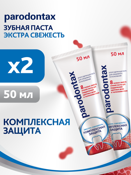 Зубная паста parodontax Комплексная Защита для укрепления зубов и поддержания здоровья десен с фтором, 50мл*2шт