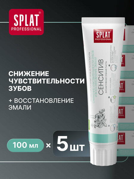Зубная паста SPLAT Professional «Сенситив» (SENSITIVE) укрепляет эмаль, снижает чувствительность и кровоточивость десен. Натуральный фермент папаин в сочетании с компонентом полидон расщепляют налет и препятствуют его дальнейшему образованию. Инновационный комплекс Sp.White System безопасно отбеливает зубы. Гидроксиапатит восстанавливает эмаль, восполняет потерю минералов и снижает чувствительность зубов. Эфирные масла ромашки и испанского лимона снижают кровоточивость десен. Растительный антисептик Biosol защищает от кариесогенных бактерий. Паста сертифицирована по стандарту Халяль. Рекомендуется взрослым и детям с 14 лет.