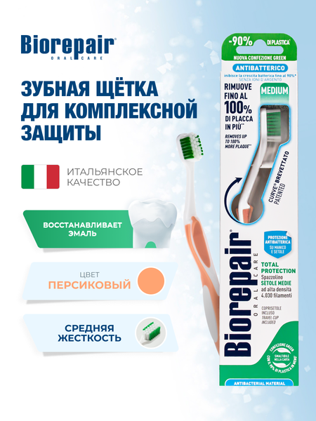 Зубная щетка Biorepair CURVE Protezione Totale средней жесткости, персиковый