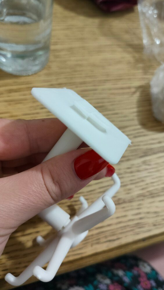 Комментарий: сделано кое-как - крепление не по центру липучки, пластик неровный со всякими "заусенцами", очень кустарный вид изделия, хрупкий пластик. Не рекомендую к покупке, если бы увидела этот товар в реальности, ни за что бы не потратила и пяти рублей на него