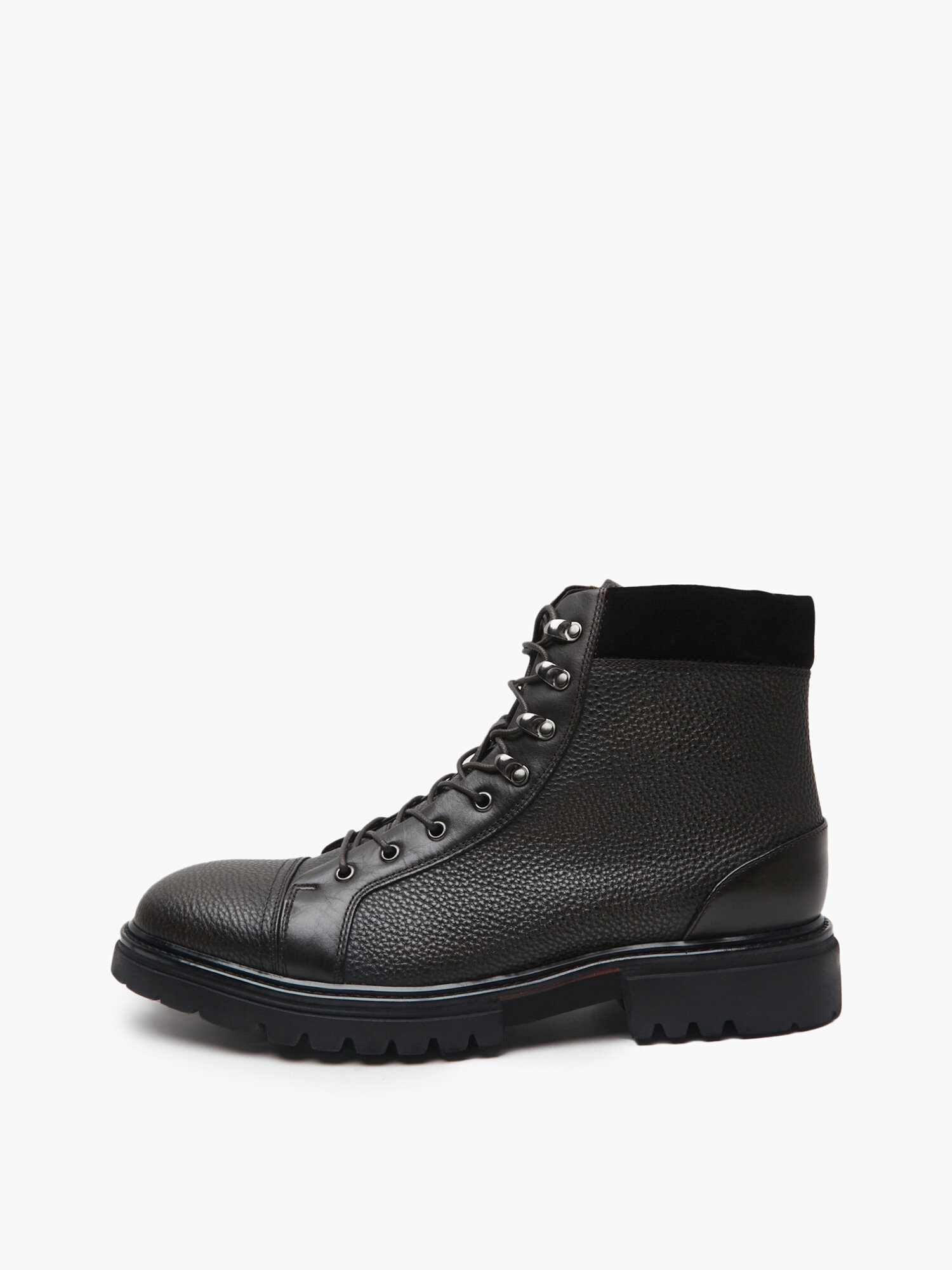 Мужские высокие ботинки из натуральной черной кожи станут незаменимым элементом гардероба как для повседневных образов, так и для более креативных луков. Подкладка ботинок выполнена из теплой байки, что обеспечит комфорт при носке в осенне-весенний период. Подошва высотой 3 см из резины придаст модели современный вид и обеспечит дополнительную теплоизоляцию. Специально разработанная стелька равномерно распределяет нагрузку на стопу, а удобная шнуровка позволяет надежно зафиксировать ногу. Ботинки Mascotte в размере 42 идеально подойдут для мужчин, ценящих стиль и качество. Черный цвет делает их универсальными, позволяя сочетать с различными стилями одежды. Эти ботинки прекрасно подойдут как для деловых встреч, так и для прогулок по городу. Благодаря прочной конструкции и высококачественным материалам, данная модель обеспечит долговечность и комфорт при длительном ношении. Ботинки Mascotte — это выбор для тех, кто не готов идти на компромиссы в вопросах стиля и удобства.