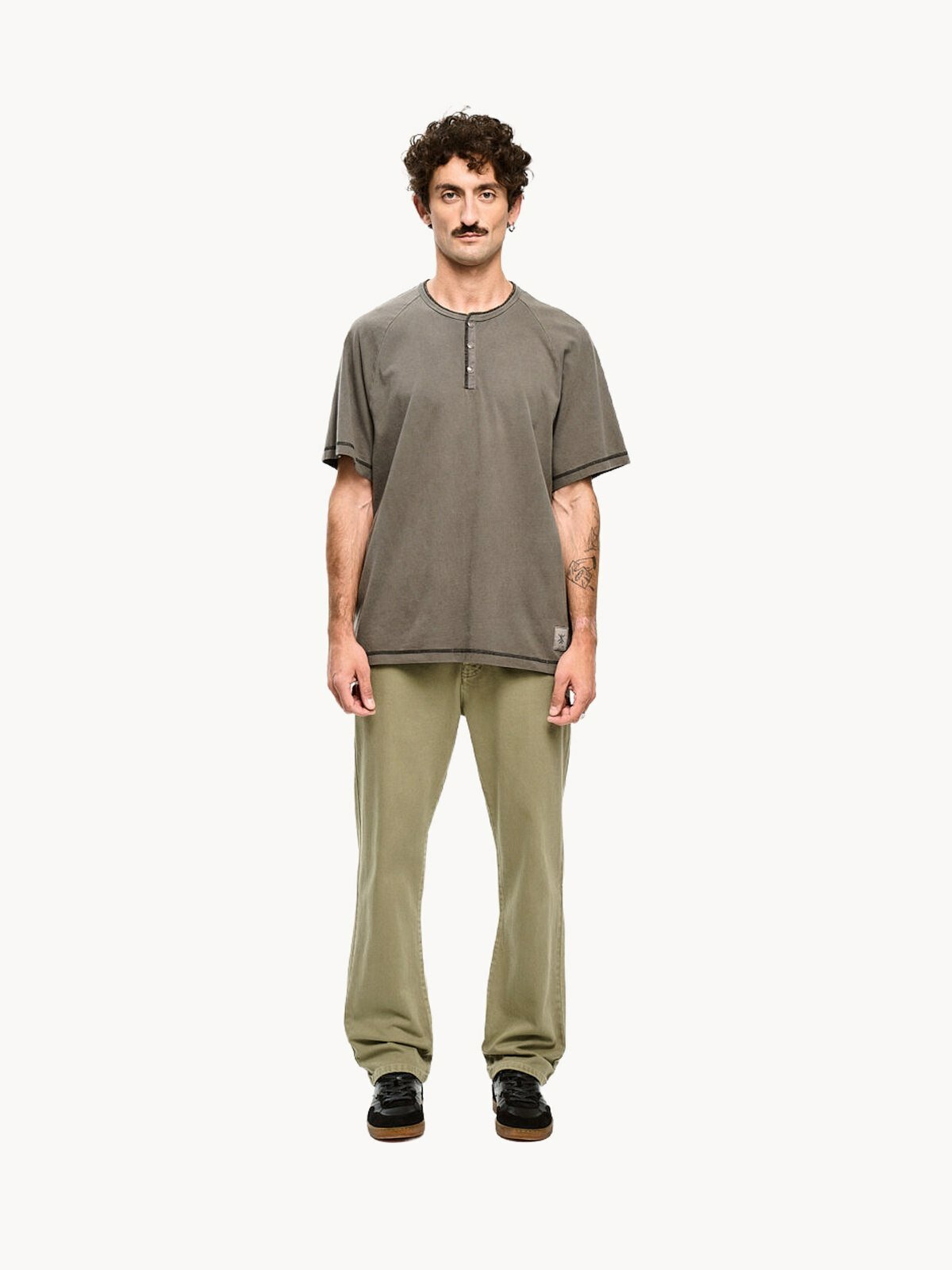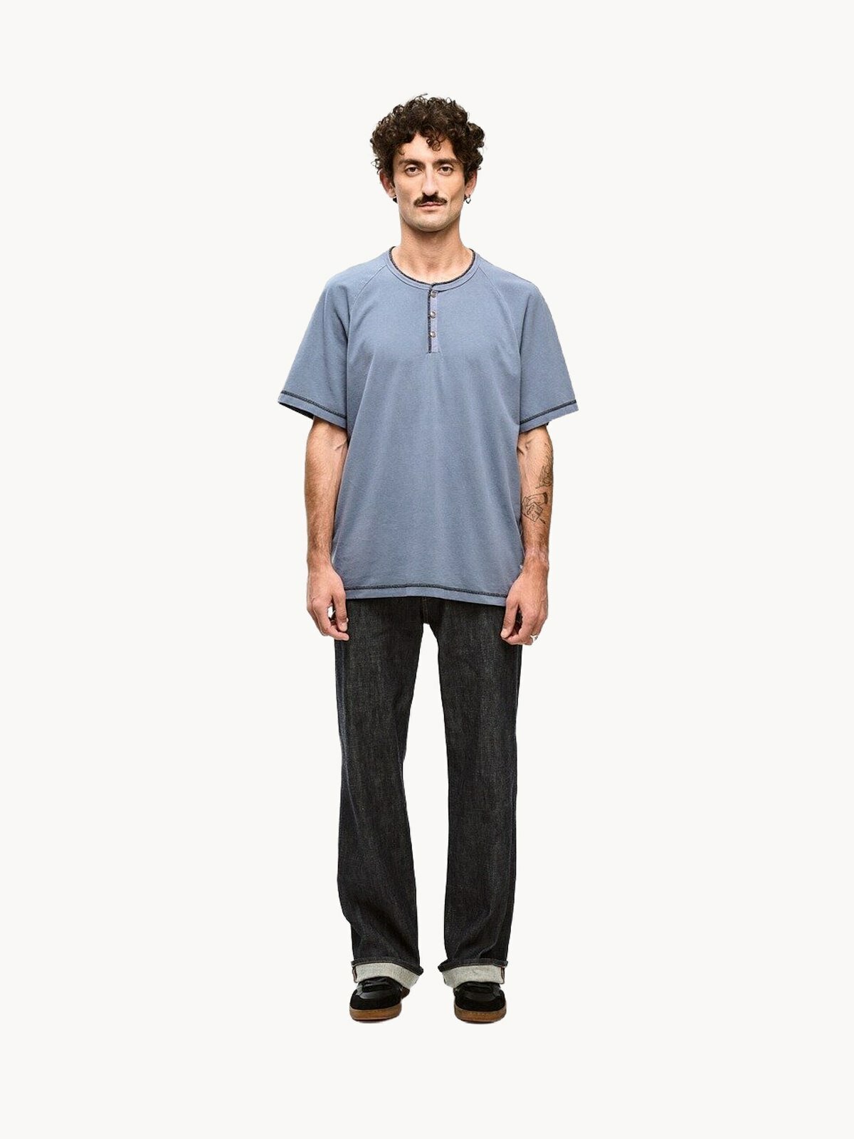 Мужская футболка от бренда GJO.E представляет собой образец современного подхода к классическому дизайну. Модель изготовлена из 100% португальского хлопка плотностью 200 гр/м², что гарантирует её долговечность, форму и комфорт при носке. Особенностью футболки стала уникальная круглая горловина с застежкой на половину длины, оснащенная фирменными клямерными кнопками — эта деталь добавляет образу стильную индустриальную эстетику и практичность.