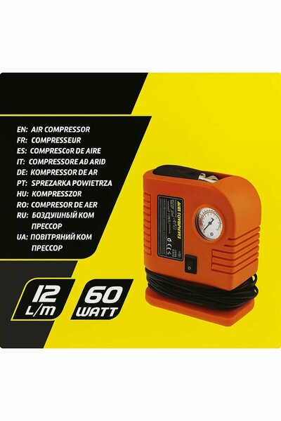 Автомобильный компрессор Air Compressor 12V 60W Компактный и надежный автомобильный компрессор – незаменимый помощник в дороге. Удобно использовать для подкачки шин легковых автомобилей, велосипедов, мотоциклов, а также для накачивания мячей, матрасов и других надувных изделий. Характеристики: • Напряжение питания: 12 В (от прикуривателя) • Мощность: 60 Вт • Производительность: 12 л/мин • Встроенный манометр для контроля давления • Удобный корпус с переключателем и кабелем питания • Комплектация переходниками для различных изделий ✅ Преимущества: • Легкий и компактный – удобно хранить в багажнике • Простое подключение и использование • Быстрое накачивание колес и аксессуаров • Подходит для повседневного и туристического использования Производство: Китай