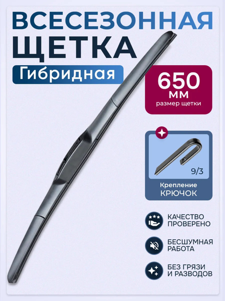 Гибридные щётки стеклоочистителя объединяют в себе преимущества каркасных и бескаркасных моделей. Благодаря этому гибридные щетки стеклоочистителя отлично справляются со своей задачей как при спокойном движении в городских условиях, так и при быстрой езде по трассам. Низкий каркас позволяет увеличить обтекаемость и снизить парусность. Пластиковый кожух защищает щётку от снега и льда, что делает эксплуатацию более комфортной в зимних условиях. Гибридный дворник можно считать оптимальным компромиссом между достоинствами и недостатками других типов щёток. Благодаря более компактному каркасу он меньше обмерзает и лучше работает на высокой скорости. А прилегание к стеклу, особенно изогнутому по краям, у него лучше, чем у бескаркасных аналогов. Гибридная модифицированная щетка стеклоочистителя 350/400/450/500/550/600/650 мм.