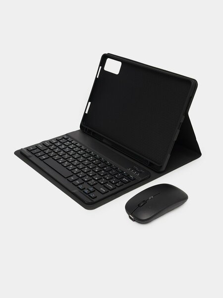 Превратите ваш планшет в полноценную рабочую станцию! Чехол, беспроводная клавиатура и Bluetooth-мышь — всё, что нужно для удобной работы, учебы и набора текста. Что в комплекте: Беспроводная клавиатура Чехол с функцией подставки Bluetooth-мышь Кабель для зарядки О мышке: Тип: Беспроводная Bluetooth-мышь Количество кнопок: 3 (левая, правая, колесо прокрутки) Совместимость: Android, Windows, iOS/iPadOS Дизайн: Эргономичная и тихая в работе Питание: Заряжаемая Характеристики товара: Комплектация: Клавиатура + чехол + Bluetooth-мышь Язык клавиатуры: Русский + Английский (RU + EN) Время работы: Клавиатура – до 100 часов, мышь – до недели (при обычном использовании) Функция подставки: Да Индикатор питания: Есть