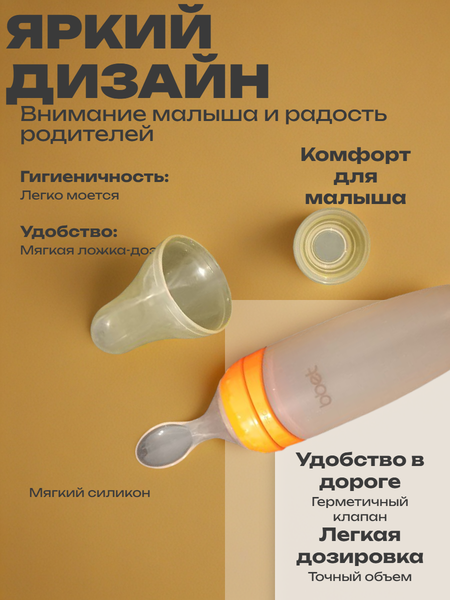 Бутылочка для кормления детей: комфорт и удобство в использовании Бутылочка для кормления детей с силиконовой ложкой-дозатором объемом 120 мл станет незаменимым помощником для родителей, которые ценят комфорт и удобство в использовании. Силиконовая ложка-дозатор: гигиеничность и безопасность Силиконовая ложка-дозатор обеспечивает гигиеничность и безопасность процесса кормления. Благодаря этому материалу, ложка легко моется и не впитывает запахи, что позволяет поддерживать чистоту и свежесть продукта. Горчичный цвет: стильный и яркий дизайн Горчичный цвет бутылочки для кормления детей придает ей стильный и яркий вид, который обязательно понравится вашему малышу. Выбирая бутылочку для кормления детей с силиконовой ложкой-дозатором, вы обеспечиваете своему ребенку комфорт и безопасность во время кормления, а также стильный и яркий дизайн, который будет радовать глаз.