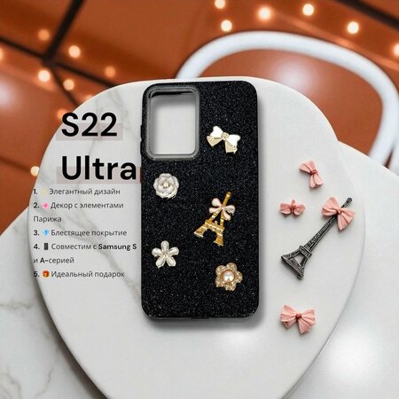Чехол Paris Bloom для Samsung S22 ULTRA, женский, с элементами Эйфелевой башни, блестящий, черный